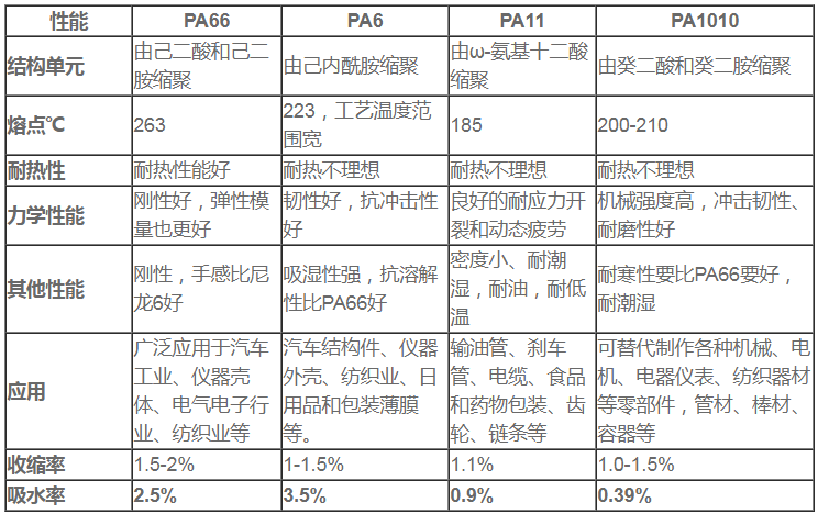 兩張圖帶你見識PA66,PA610等尼龍全面特性!
